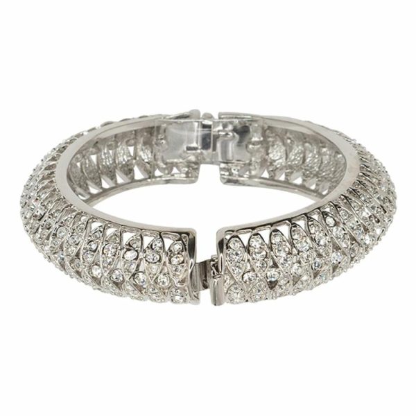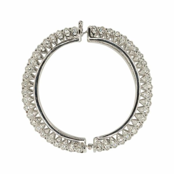 Product Description: A Jackie Onassis original, this silver bangle with bright pavé crystals will glimmer and shine as a magnificent piece on your wrist.