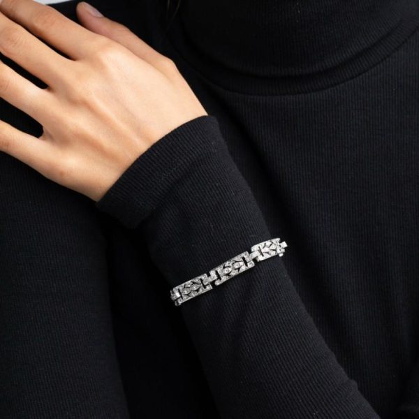 Kenneth Jay Lane Clear Crystal Bracelets | Silver And Crystal Art Deco Link Bracelet Women