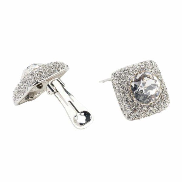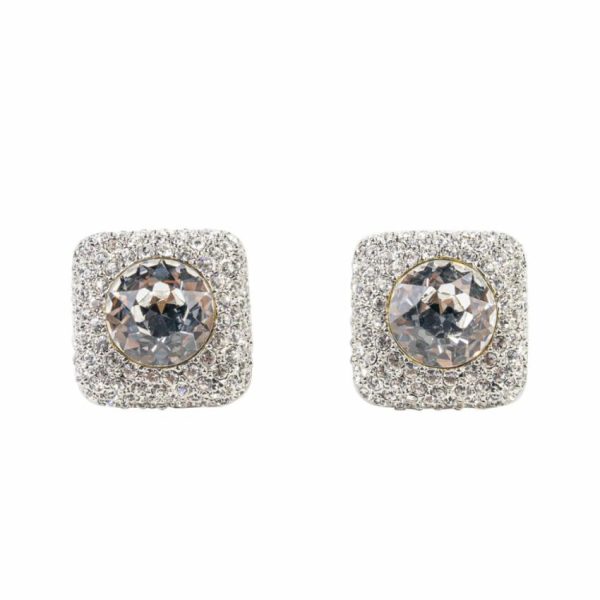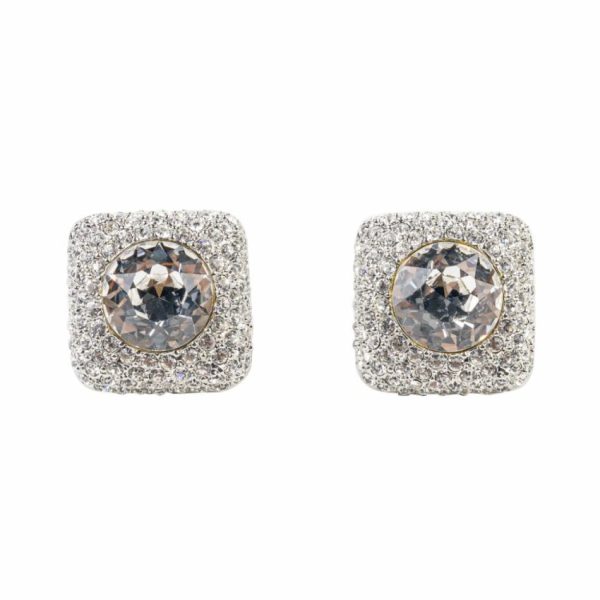 Silver cluster square clip earring with a luxurious crystal center.