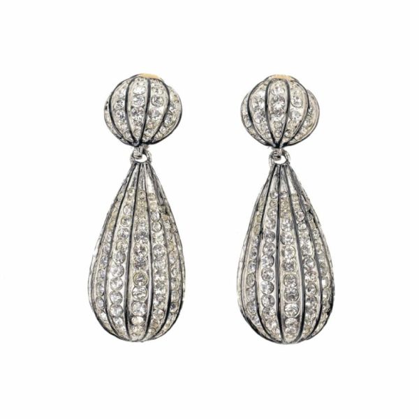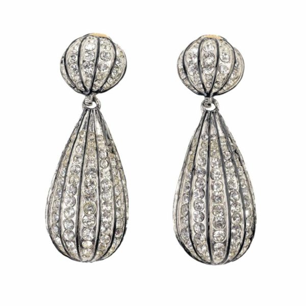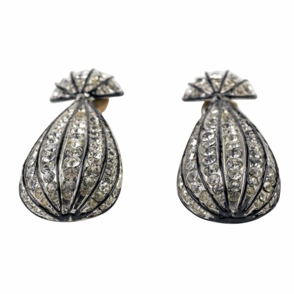 Product Description: Rhodium-plated with enamel black lining, these sparkling glass crystal clip-on earrings will shimmer and shine with beauty when you pair them with your favorite Little Black Dress!