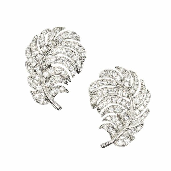Product Description: Let all your fashion fears fly away with these silver-plated, glass crystal pavé feather earrings.