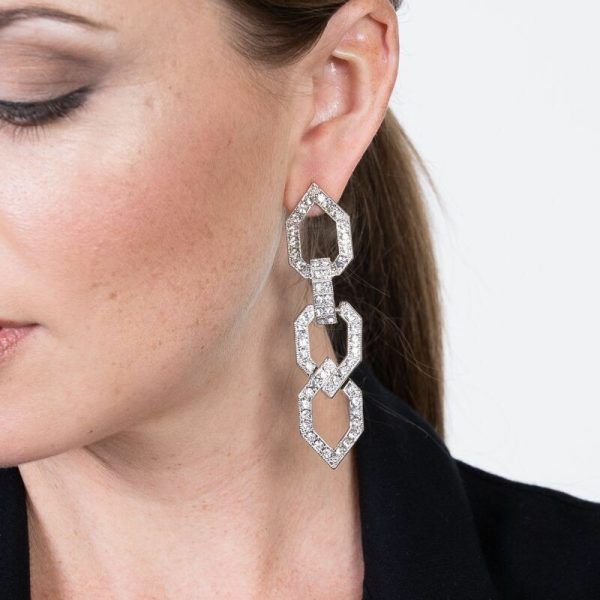 Product Description: Shimmering crystals exaggerate the vintage sophistication of these impeccable open link drop pierced earrings. Rhodium-plated adorned with glass rhinestones make these earrings shine.