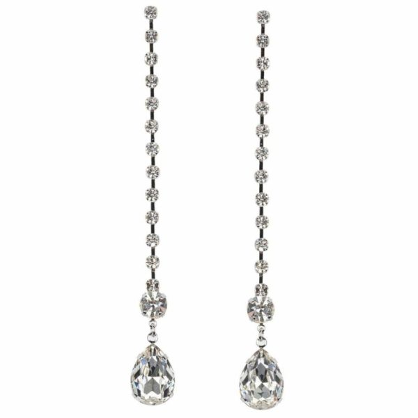 Product Description: These lovely rhinestone drop pierced earrings are finished with a decadent teardrop-shaped crystal.