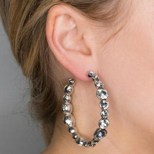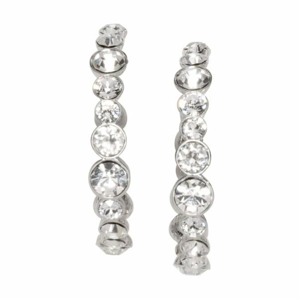 Product Description: Different size crystals adorn this stylish silver and crystal hoop pierced earring.
