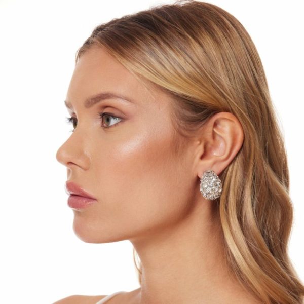 Kenneth Jay Lane Clear Crystal Earrings | Crystal Half Hoop Clip Earrings Women