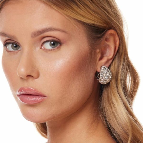 Product Description: This clip oval stones domed earring features silver and crystal faceted oval stones in a domed shape, perfect for many occasions.
