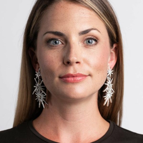 Product Description: Star-bright sparkling crystals embellish eye-catching stars on glamorous drop pierced earrings.