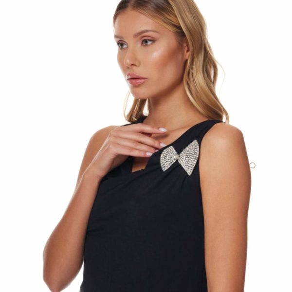 Product Description: Get dressed up with this dazzling silver and crystal bow tie pin. Perfect for any occasion.
