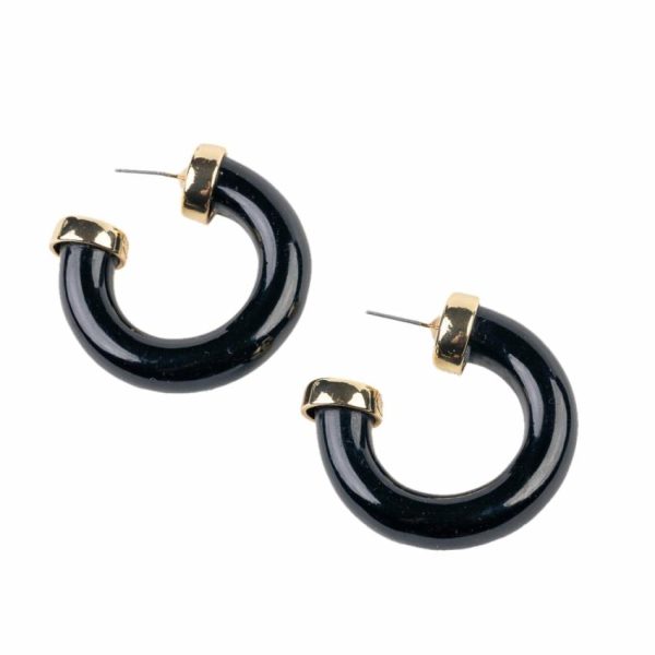 Sleek and simple, these black polished hoop earrings are perfect for any occasion.