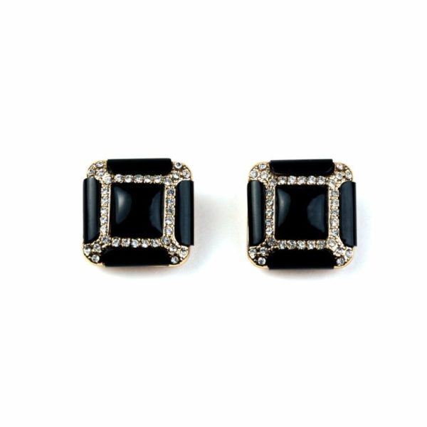 Kenneth Jay Lane Dark Color Earrings | Black Square Clip Earrings Women
