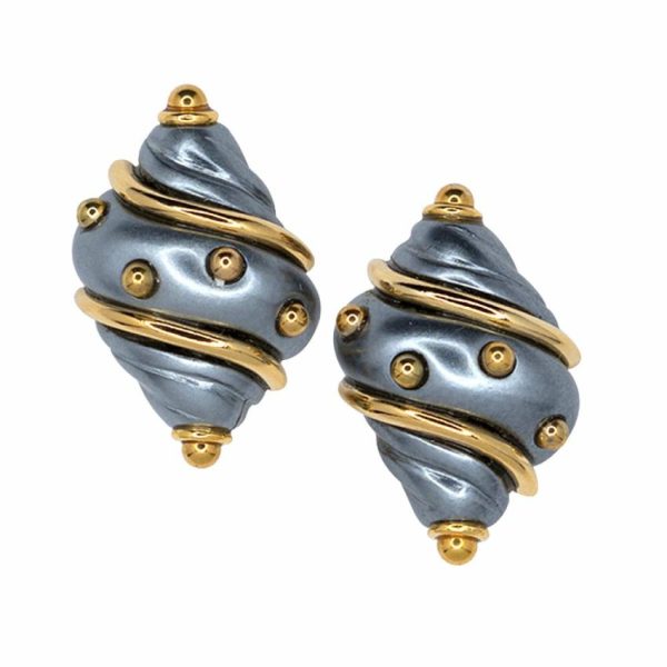 Kenneth Jay Lane Dark Color Earrings | Mother Of Pearl Art Deco Clip Earrings Women