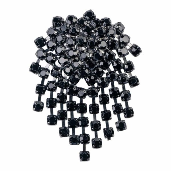 Kenneth Jay Lane Dark Color Earrings | Rhinestone And Hematite Flower Clip Earring Women