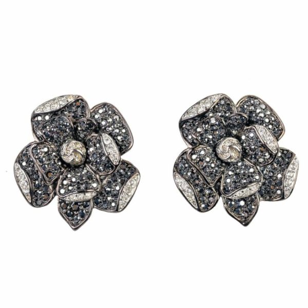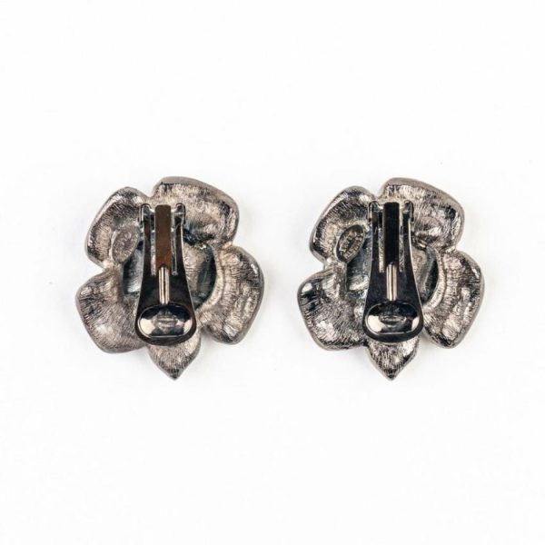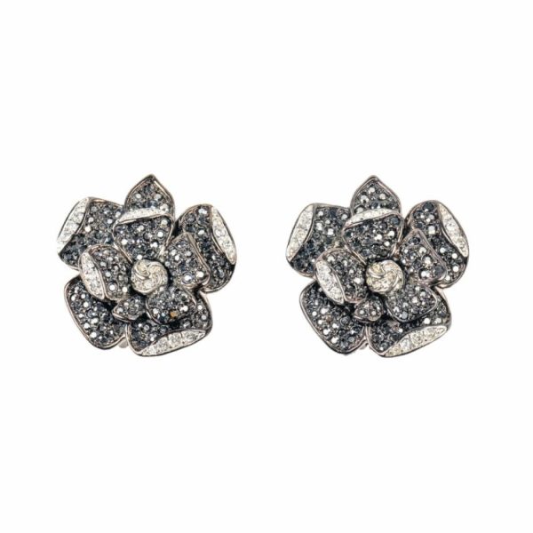 Make a statement with these luminous rhinestone and hematite flower clip earrings.
