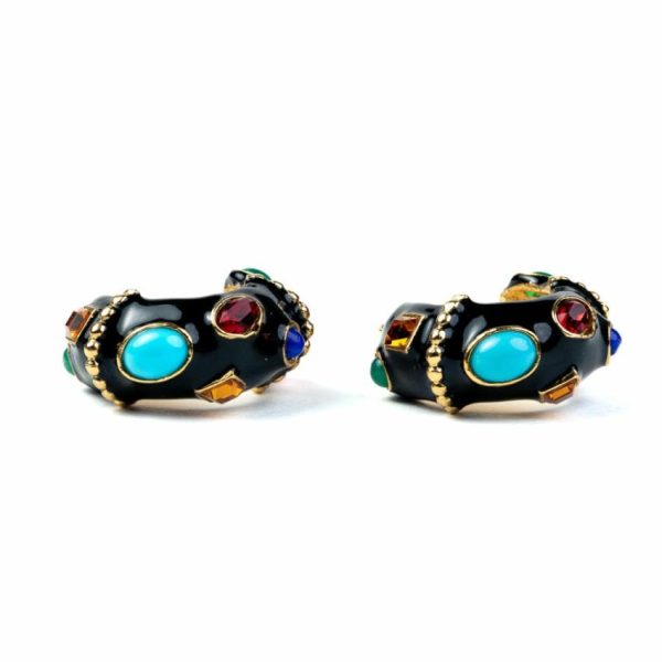 Product Description: These exquisitely designed clip hoop earrings are crafted with a luxurious combination of gleaming gold, bold black and dazzling multicolored gemstones. A timeless accessory, these earrings promise to become an heirloom piece, adding an elegant and tasteful touch to your wardrobe.