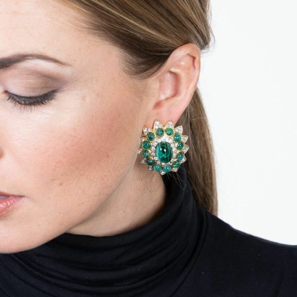 Kenneth Jay Lane Dark Color Gem Earrings | Emerald Cabochon Pierced Or Clip Earrings Women