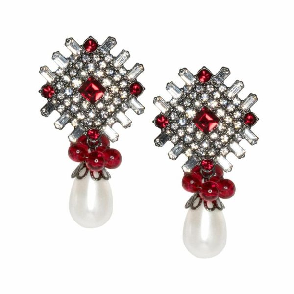 Kenneth Jay Lane Dark Color Gem Earrings | Rose & Ruby Teardrop Pierced Earring Women