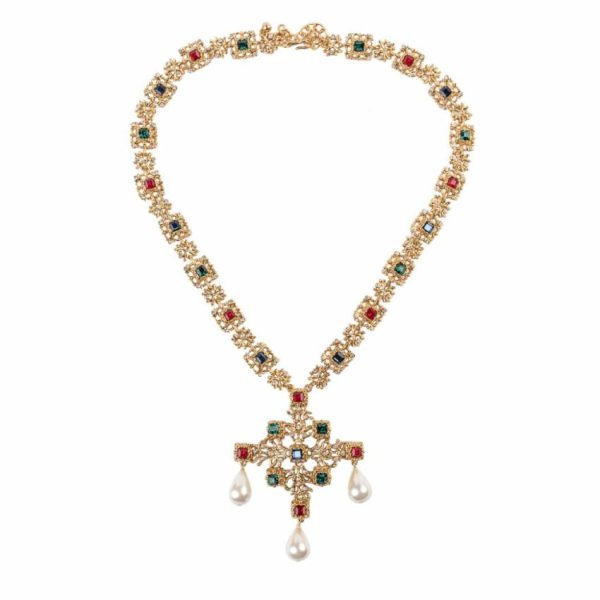 Product Description: Steal the spotlight with this stunning, specially designed antique gold and multicolor drop pendant necklace.