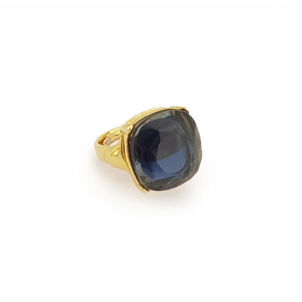 Product Description: Your newest go-to statement piece. This gold and faux sapphire square stone ring is unique and timeless.
