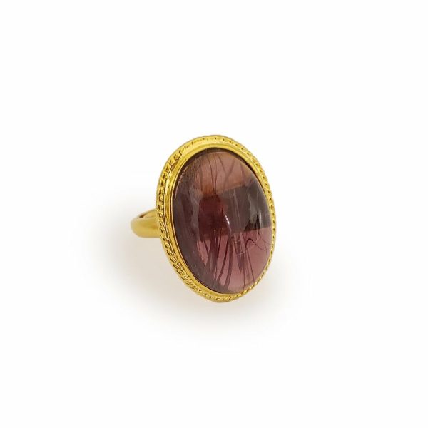 Product Description: A gorgeous, heirloom-quality piece. This satin gold and flawed amethyst center oval ring is the perfect to your collection.