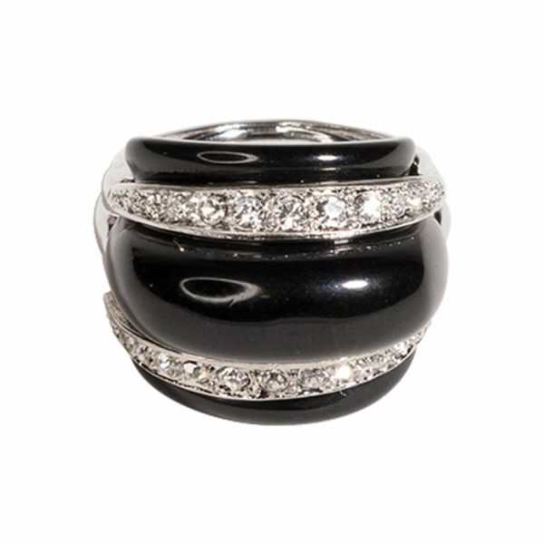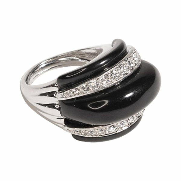 Product Description: This Dutchess of Windsor auction piece is a must-have! With crystal pavé outlining a black resin dome, this simple yet elegant adjustable ring is the perfect everyday piece.