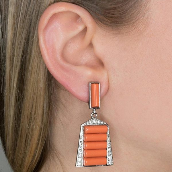 Product Description: Zest up your style with these coral and silver deco clip earrings. The crystal detailing around the edges will prove to be a show stopper at any event.