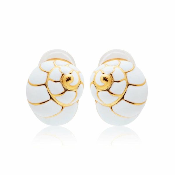 Product Description: These beautiful gold and white enamel shell clip earrings take your look instantly to your dream beach vacation.