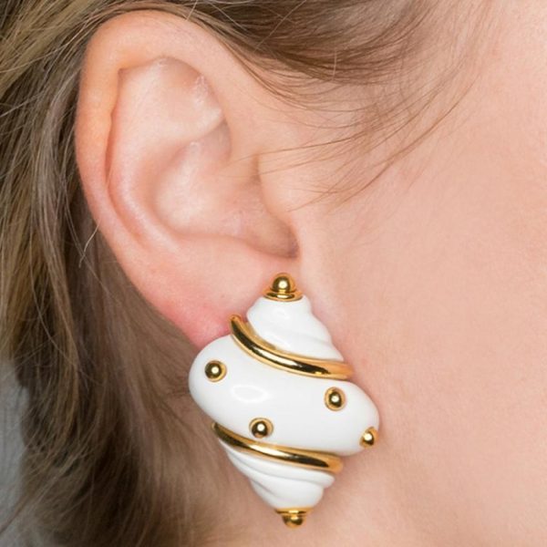 Product Description: Get your gold embellished white shell earrings before they are all gone.