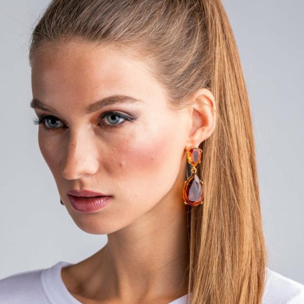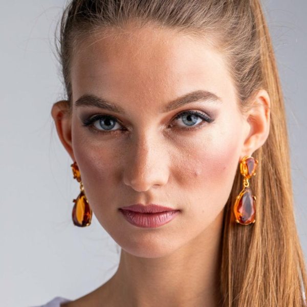 Product Description: Shimmering topaz stones surrounded by gold exaggerate the vintage sophistication of these KJL original glass stone impeccable teardrop earrings.