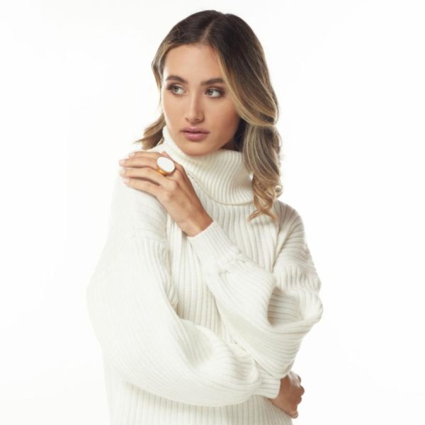Product Description: This polished gold and white enamel kidney shaped ring is timeless and perfect for any occasion.