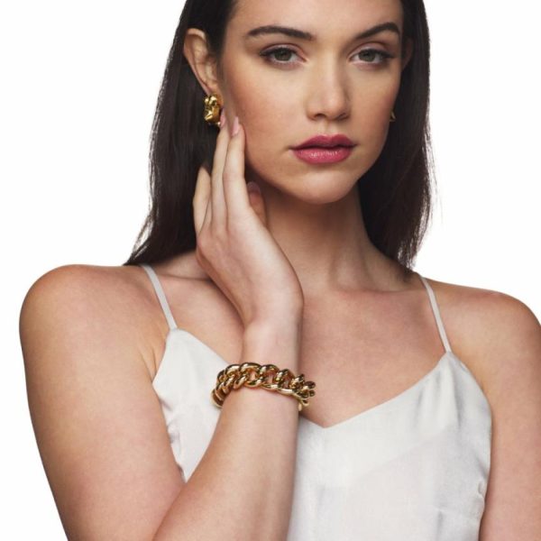 Product Description: Links for days with this simple polished gold large link bracelet.