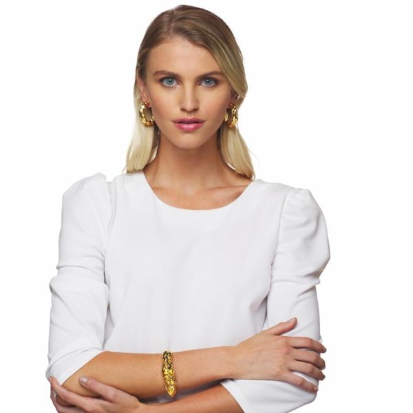 Polished Gold Sculpted Hoop Pierced Earrings