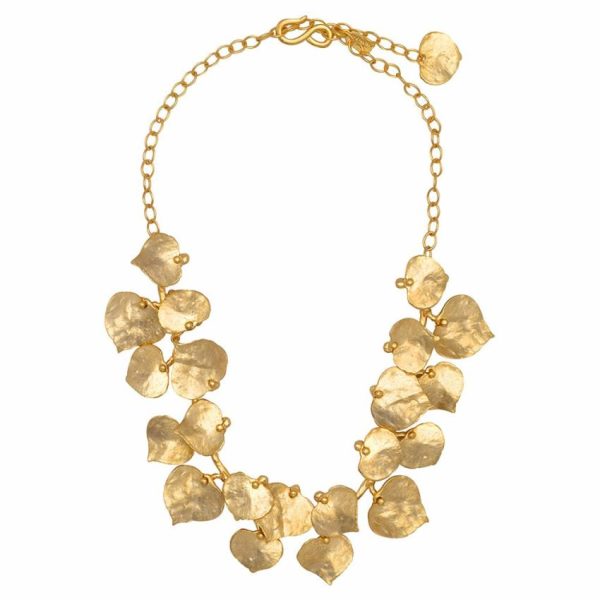Product Description: A floral motif gets an updated chic look. This satin gold leaf design “S” clasp necklace is perfect for any occasion.
