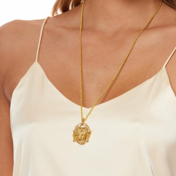 Product Description: This classic 25-inch gold lion head pendant necklace from Kenneth Jay Lane is the perfect way to add a touch of sophistication to your everyday look. Shop now and add this stunning necklace to your collection!