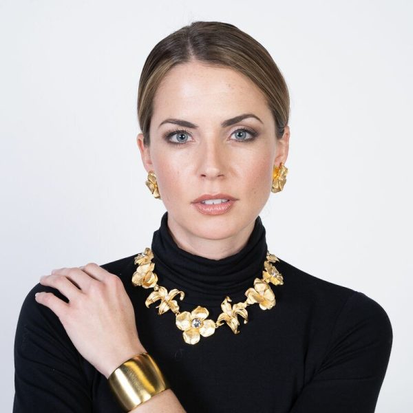 Product Description: Unabashedly feminine, this satin gold-plated flower necklace with crystal and white pearl centers will elevate any look with perennially blooming flowers cast in a golden gleam. Pair with our Satin Gold Cluster Crystal Center Flower Clip Earrings.