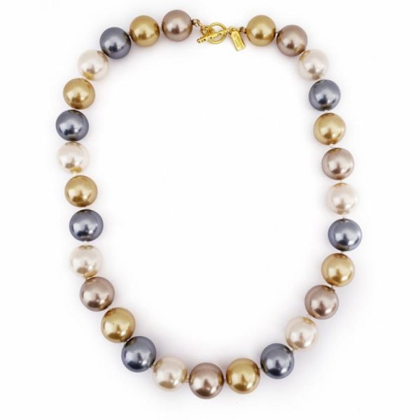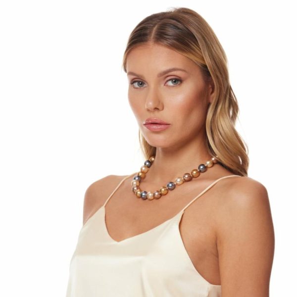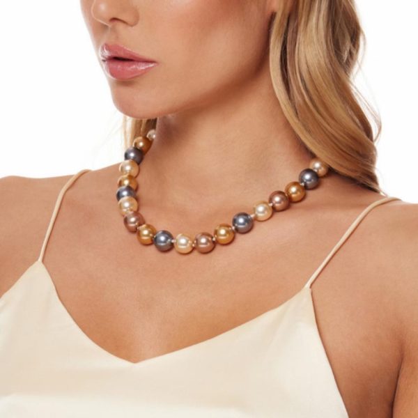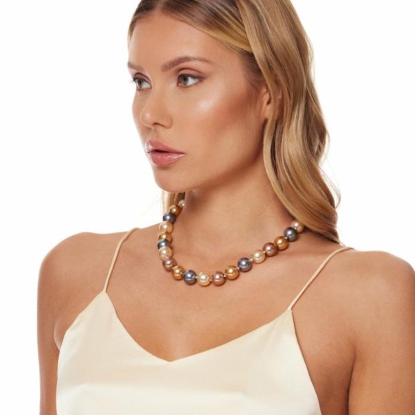 Product Description: This faux pearl necklace is comprised of glass-based pearls in a beautiful multicolored arrangement for a timeless look.
