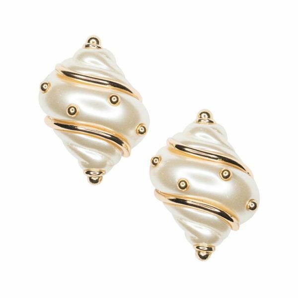 Product Description: Hear the call of the ocean in these faux shell pearl earrings with gold accents. A copy of the ones worn by Jackie Onassis Kennedy, the original pair was auctioned for $25,300!