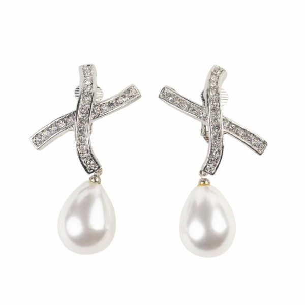 Product Description: You will “wow” everyone at your next event wearing these fabulous earrings! A rhodium-plated, rhinestone “X” marks the spot and dazzles with a faux, white pearl drop.
