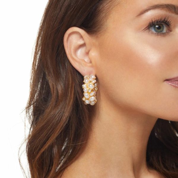 Kenneth Jay Lane Pearl Earrings | Gold And White Pearl Ball Hoop Pierced Earrings Women