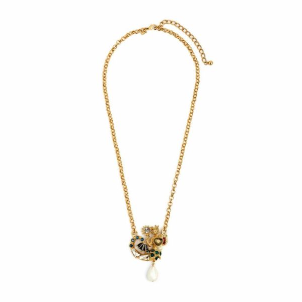 Product Description: Swim in style with our Gold Chain and Multi Color Pearl Drop Mermaid Pendant Necklace. This 32″ polished gold chain features a playful mermaid pendant adorned with a variety of gold and colorful pearls. A unique and stunning addition to any outfit.