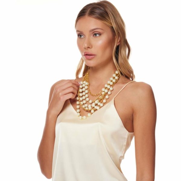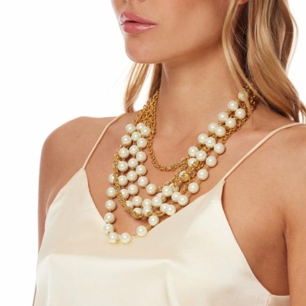 Product Description: Not 1! Not 2! But 6 rows of our gold chains and pearls necklace. This statement piece is so elegant to dress up for fancy occasions and it cant wait to be yours!