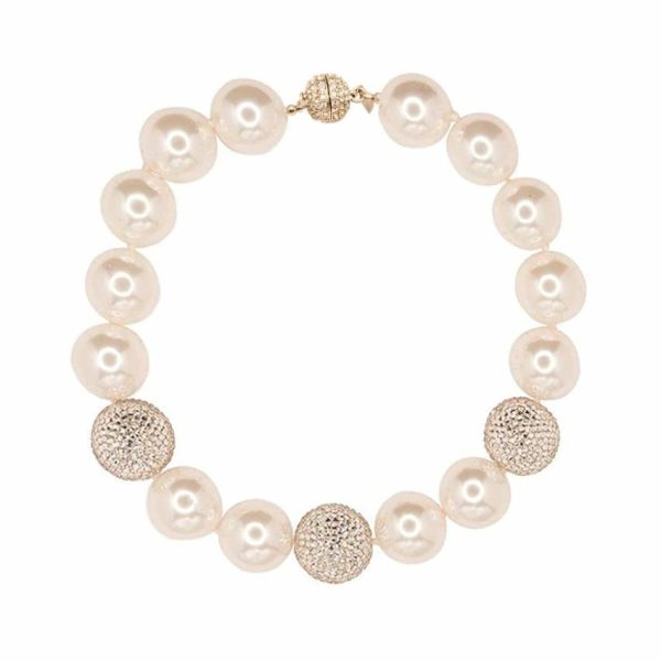 Product Description: Channel the elegance and flair of Jackie Kennedy with this white pearl andcrystalpavé necklace. This necklace is a replica of the original one worn by Jackie Kennedy, which sold at auction for $28.750.
